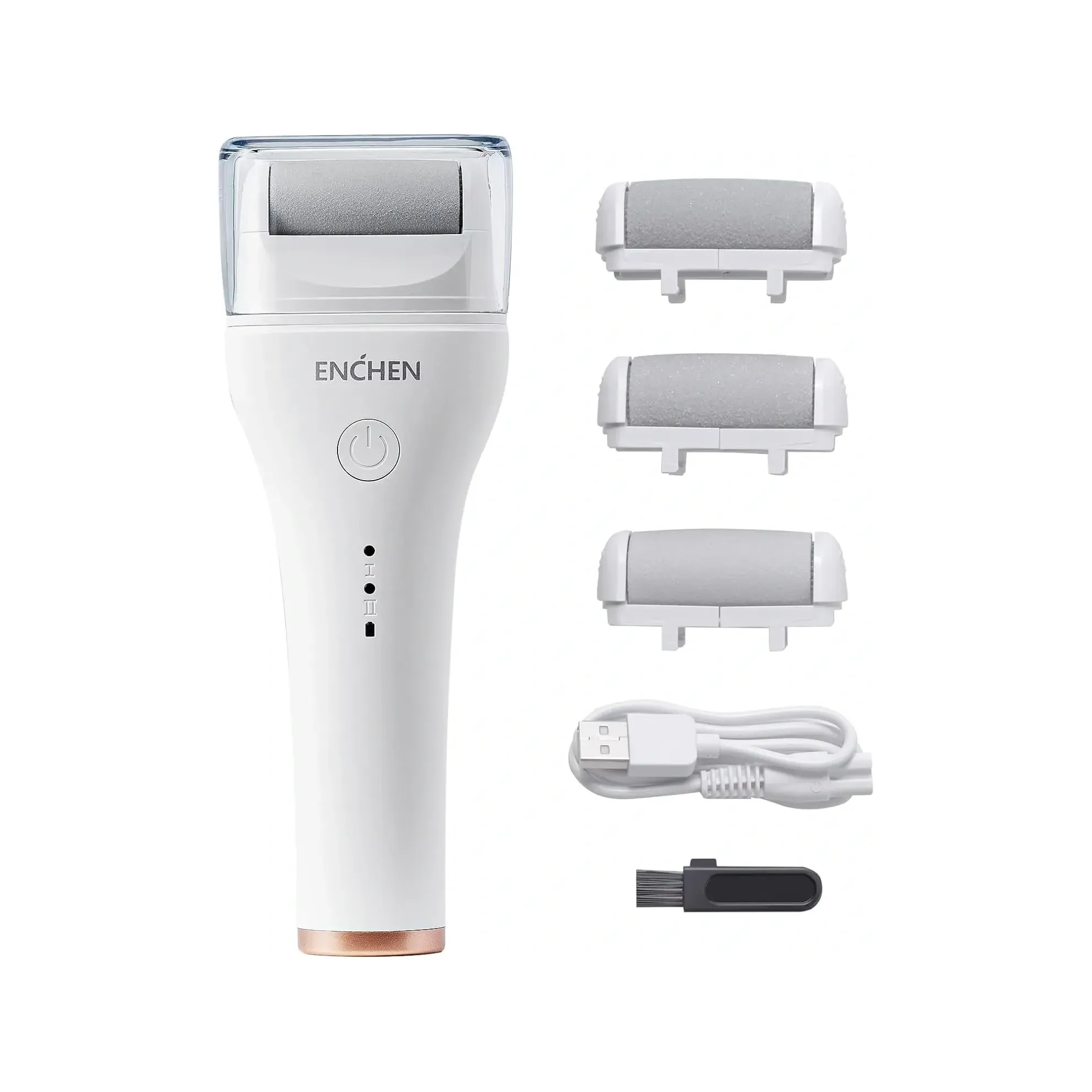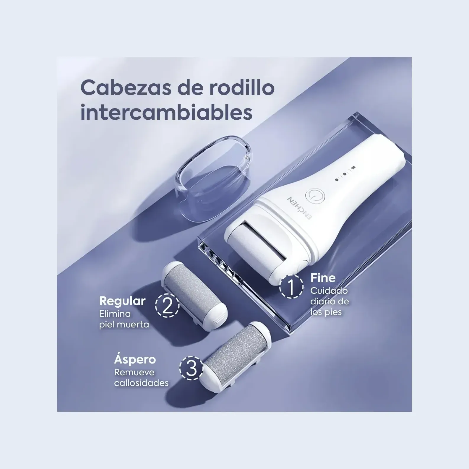 Outstanding features Three interchangeable roller heads: Perfect for daily care of your feet, each head is designed for different needs: a fine one for daily maintenance, a regular one for removing dead skin and a coarse one for stubborn calluses. Powerful dual-speed motor: With a 1500 mAh lithium-ion battery, this remover offers two speeds: 2200 r/min for sensitive skin and 2600 r/min for normal, oily and combination skin. With a full charge, you will enjoy 3 hours of use. Full body waterproof design: IPX6 rated, this remover is safe to use in wet or dry conditions. Easily rinse it under water for 2-3 minutes and keep your device always clean and ready to use. Safe, simple and convenient: Ergonomic design ensures it is comfortable to hold and easy to use. You only need to gently move the roller head over your skin for a few seconds and you will see instant results BENEFITS Using this callus remover not only ensures smoother and healthier feet, but also transforms your personal care routine into a true moment of relaxation. Its ergonomic design and easy handling make removing dead skin a simple and quick task. And because it can be used in wet conditions, you'll enjoy a spa-quality pedicure without leaving home, keeping your feet in perfect condition all year round.